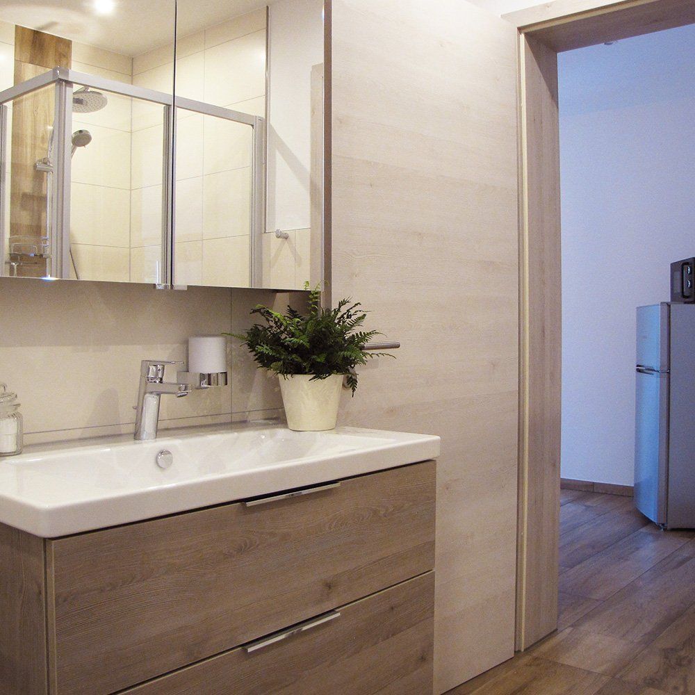 Herrlich weiches Wasser aus dem Bayerischen Wald. Eine geräumige Dusche, ein großer, gut beleuchteter Spiegel, viel Ablagefläche und kuschelige Handtücher aus Bio-Baumwolle. Was braucht man mehr, um den Tag entspannt beginnen zu lassen?